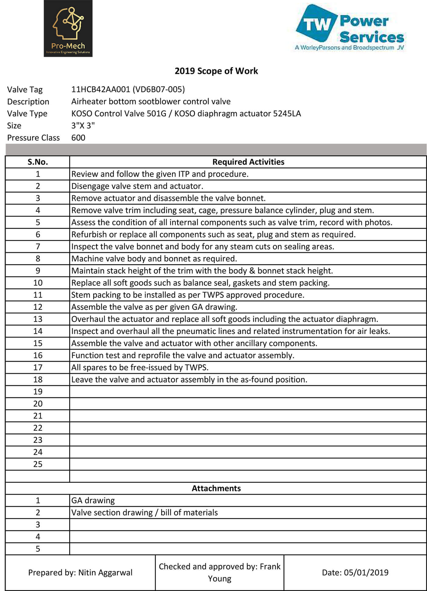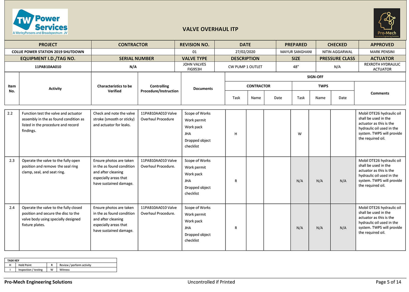 We provide safe work procedures, Inspection and Test Plans, technical information for a thorough and safe execution of any maintenance project.